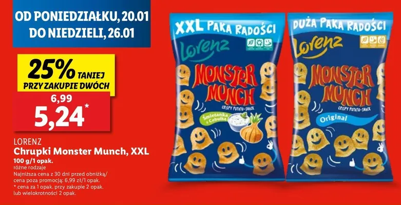 Przegl膮daj podobne oferty promocyjne do Chrupki 艣mietanka z cebulk膮 Lorenz monster munch!