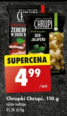 Cena produktu r贸偶ni si臋 w zale偶no艣ci od wybranego sklepu. Niestety nie posiadamy danych o aktualnych promocjach, jednak w艣r贸d archiwalnych ofert Chrupki 偶eberka w sosie bbq Chrupi Eurosnack kosztuje od 4,99 z艂.