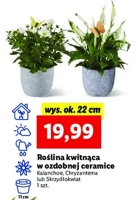 Cena produktu r贸偶ni si臋 w zale偶no艣ci od wybranego sklepu. Niestety nie posiadamy danych o aktualnych promocjach, jednak w艣r贸d archiwalnych ofert Chryzantema doniczka 11 cm kosztuje od 19,99 z艂.