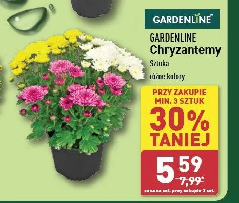 Cena produktu r贸偶ni si臋 w zale偶no艣ci od wybranego sklepu. Niestety nie posiadamy danych o aktualnych promocjach, jednak w艣r贸d archiwalnych ofert Chryzantema GARDEN LINE kosztuje od 5,59 z艂.