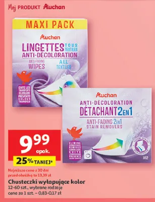 Ile kosztuje Chusteczki absorbuj膮ce kolor Auchan activ clean?