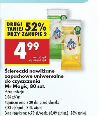 Cena produktu różni się w zależności od wybranego sklepu. Niestety nie posiadamy danych o aktualnych promocjach, jednak wśród archiwalnych ofert Chusteczki do czyszczenia świeża cytryna Mr magic kosztuje od 4,49 zł do 4,99 zł.