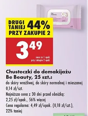 Cena produktu r贸偶ni si臋 w zale偶no艣ci od wybranego sklepu. Niestety nie posiadamy danych o aktualnych promocjach, jednak w艣r贸d archiwalnych ofert Chusteczki do demakija偶u sensitive Be beauty care kosztuje od 2,99 z艂 do 3,49 z艂.