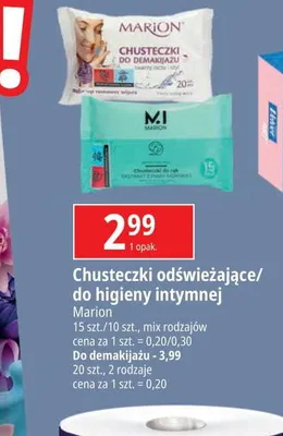 Cena produktu r贸偶ni si臋 w zale偶no艣ci od wybranego sklepu. Niestety nie posiadamy danych o aktualnych promocjach, jednak w艣r贸d archiwalnych ofert Chusteczki do demakija偶u twarzy Marion kosztuje od 3,99 z艂.