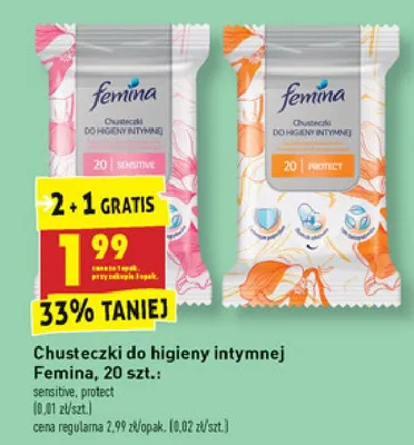 Gdzie mo偶na tanio kupi膰 produkt Chusteczki do higieny intymnej sensitive Femina classic?