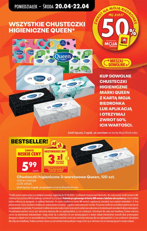 Przegl膮daj oferty promocyjne na produkt Chusteczki higieniczne 3-warstwowe Queen