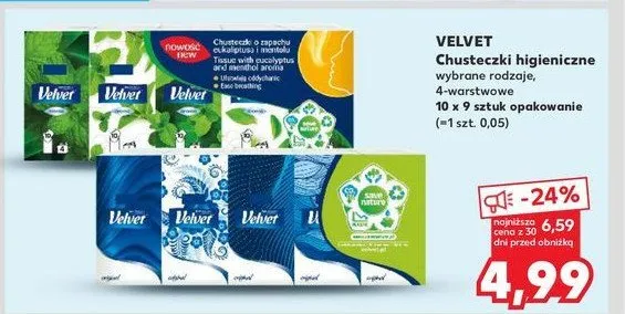 Ile kosztuje Chusteczki higieniczne mi臋ta Velvet aroma?