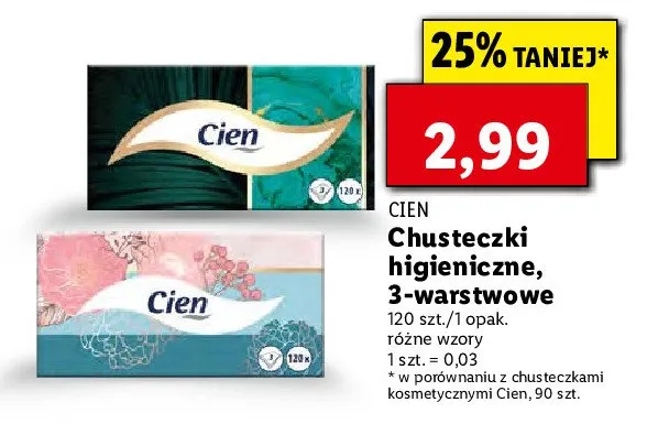 Ile kosztuje Chusteczki kosmetyczne Cien?