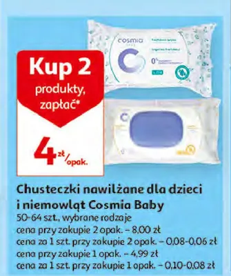 Cena produktu r贸偶ni si臋 w zale偶no艣ci od wybranego sklepu. Niestety nie posiadamy danych o aktualnych promocjach, jednak w艣r贸d archiwalnych ofert Chusteczki nawil偶ane olive oil Cosmia baby kosztuje od 3,5 z艂 do 4,99 z艂.