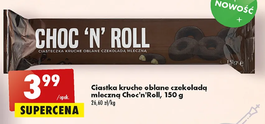 Gdzie mo偶na tanio kupi膰 produkt Ciasteczka kruche oblane czekolad膮 mleczn膮 Choc 'n' roll?