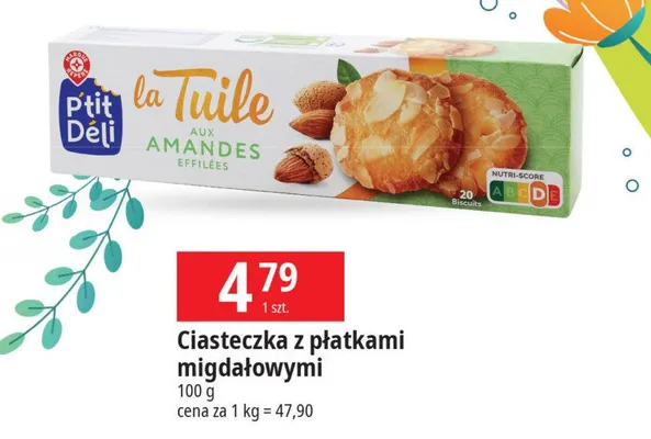 Ile kosztuje Ciasteczka kruche z p艂atkami migda艂owymi Wiod膮ca marka p'tit deli?