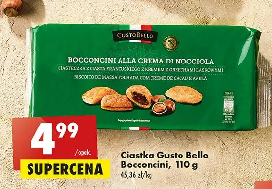 Ile kosztuje Ciasteczka z ciasta francuskiego z kremem z orzechami laskowymi Gustobello?