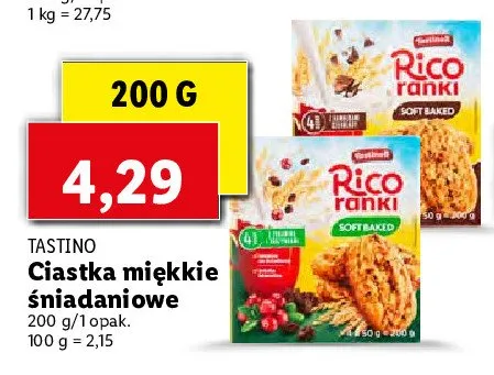 Ile kosztuje Ciastka 4 zboża z żurawiną i rodzynkami Tastino rico ranki?