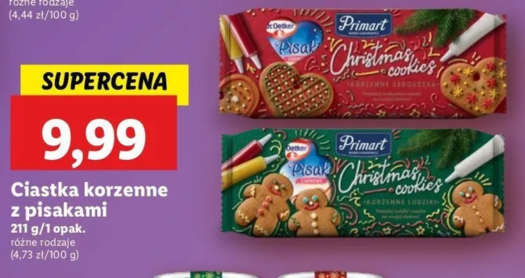 Cena produktu r贸偶ni si臋 w zale偶no艣ci od wybranego sklepu. Niestety nie posiadamy danych o aktualnych promocjach, jednak w艣r贸d archiwalnych ofert Ciastka korzenne serca z pisakami Primart kosztuje od 9,99 z艂.