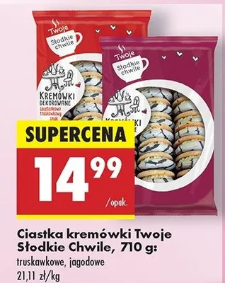 Cena produktu r贸偶ni si臋 w zale偶no艣ci od wybranego sklepu. Niestety nie posiadamy danych o aktualnych promocjach, jednak w艣r贸d archiwalnych ofert Ciastka krem贸wki dekorowane jagodowe Twoje s艂odkie chwile kosztuje od 14,99 z艂.