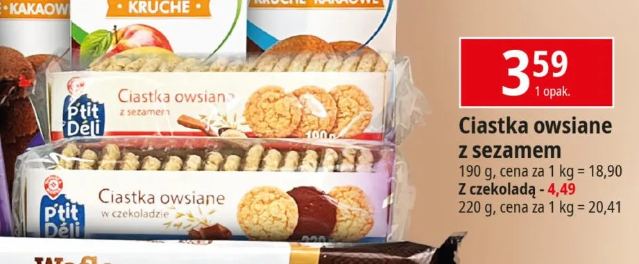Przegl膮daj oferty promocyjne na produkt Ciastka owsiane w czekoladzie Wiod膮ca marka p'tit deli