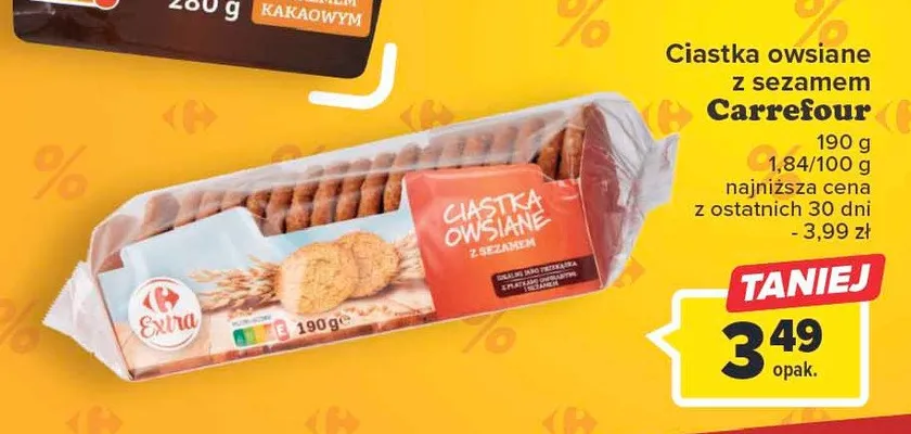 Ile kosztuje Ciastka owsiane z sezamem Carrefour extra?