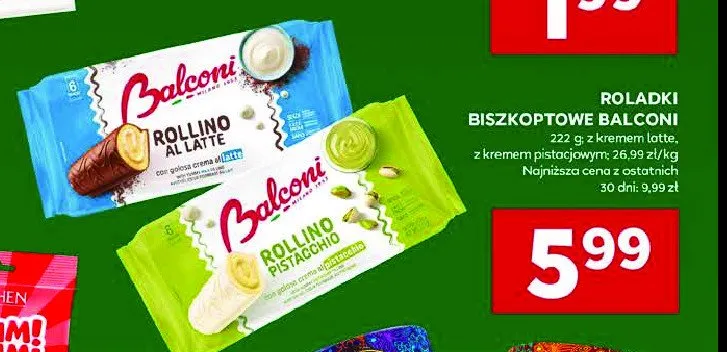 Zastanawiasz si臋, gdzie kupi膰 i ile kosztuje produkt Ciastka rollino latte milk Balconi? Regularnie sprawdzamy, czy jest promocja na ten produkt w Biedronka, Lidl, Kaufland, Auchan, Netto, Makro i innych sklepach. Aktualnie nie posiadamy ofert promocyjnych na ten produkt.