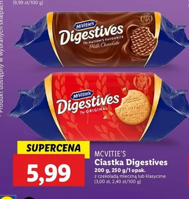 Cena produktu r贸偶ni si臋 w zale偶no艣ci od wybranego sklepu. Niestety nie posiadamy danych o aktualnych promocjach, jednak w艣r贸d archiwalnych ofert Ciastka w czekoladzie mlecznej MC VITIE'S DIGESTIVE kosztuje od 5,99 z艂.