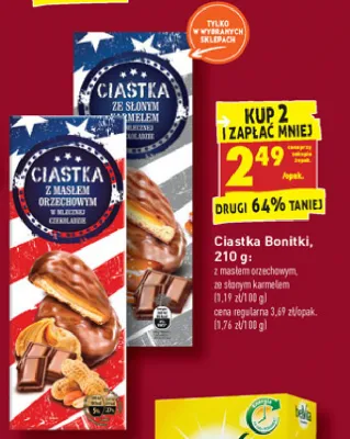 Przegl膮daj podobne oferty promocyjne do Ciastka z mas艂em orzechowym w mlecznej czekoladzie Bonitki!