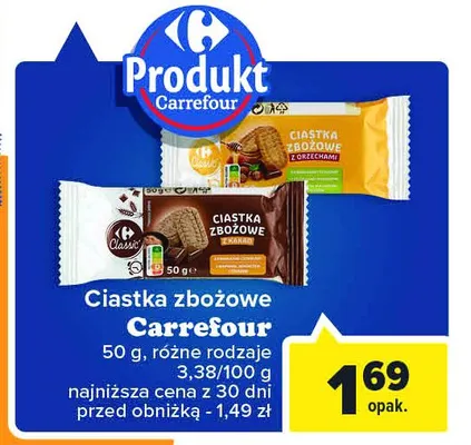 Ile kosztuje Ciastka zbo偶owe z orzechami Carrefour classic?