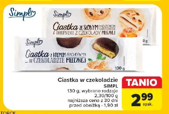 Gdzie mo偶na tanio kupi膰 produkt Ciastka ze s艂onym nadzieniem i dropsami z czekolady Simpl?