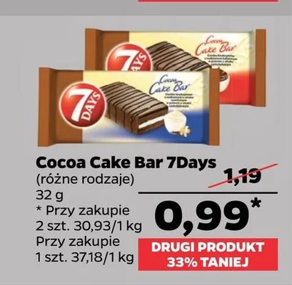 Gdzie mo偶na tanio kupi膰 produkt Ciastko z nadzieniem kakaowym 7 days cake bar?