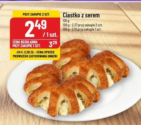 Cena produktu r贸偶ni si臋 w zale偶no艣ci od wybranego sklepu. Niestety nie posiadamy danych o aktualnych promocjach, jednak w艣r贸d archiwalnych ofert Ciastko z serem kosztuje od 2,49 z艂.