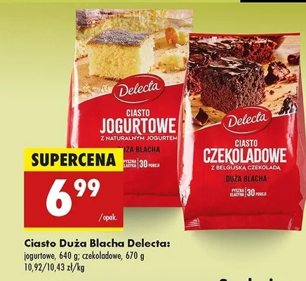 Cena produktu r贸偶ni si臋 w zale偶no艣ci od wybranego sklepu. Produkt Ciasto jogurtowe Delecta mo偶esz kupi膰 w promocji ju偶 od 7,49 z艂. Najta艅sza oferta, jak膮 mamy w naszej bazie jest z sieci Biedronka. Ciasto jogurtowe Delecta kosztuje aktualnie 7,49 z艂. Zobacz ofert臋