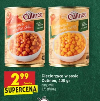 Cena produktu r贸偶ni si臋 w zale偶no艣ci od wybranego sklepu. Niestety nie posiadamy danych o aktualnych promocjach, jednak w艣r贸d archiwalnych ofert Ciecierzyca w sosie curry Culineo kosztuje od 2,99 z艂.