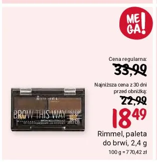 Cena produktu r贸偶ni si臋 w zale偶no艣ci od wybranego sklepu. Niestety nie posiadamy danych o aktualnych promocjach, jednak w艣r贸d archiwalnych ofert Cienie do brwi Rimmel brow this way kosztuje od 18,49 z艂.