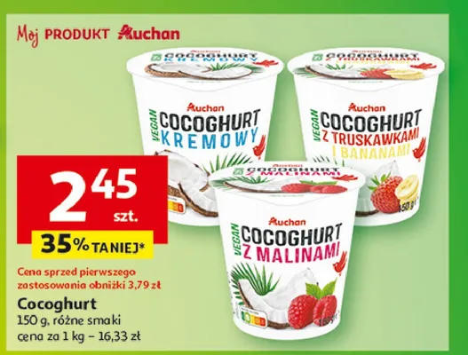 Gdzie mo偶na tanio kupi膰 produkt Cocoghurt z truskawkami i bananami Auchan r贸偶norodne (logo czerwone)?