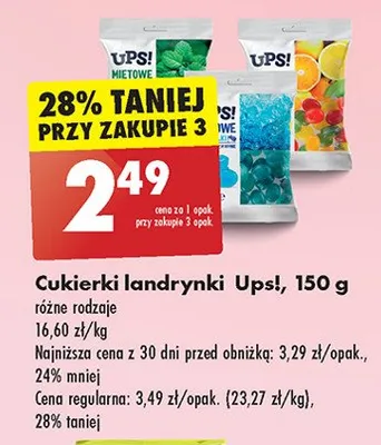 Cena produktu r贸偶ni si臋 w zale偶no艣ci od wybranego sklepu. Niestety nie posiadamy danych o aktualnych promocjach, jednak w艣r贸d archiwalnych ofert Cukierki o smaku lodowym Ups! kosztuje od 1,33 z艂 do 2,49 z艂.