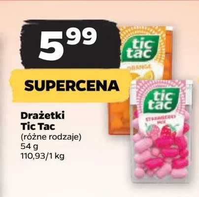 Cena produktu r贸偶ni si臋 w zale偶no艣ci od wybranego sklepu. Niestety nie posiadamy danych o aktualnych promocjach, jednak w艣r贸d archiwalnych ofert Cukierki strawberry mix Tic tac kosztuje od 5,99 z艂.