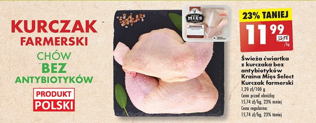 Gdzie mo偶na tanio kupi膰 produkt 膯wiartka z kurczaka farmerskiego bez antybiotyk贸w Kraina mi臋s?