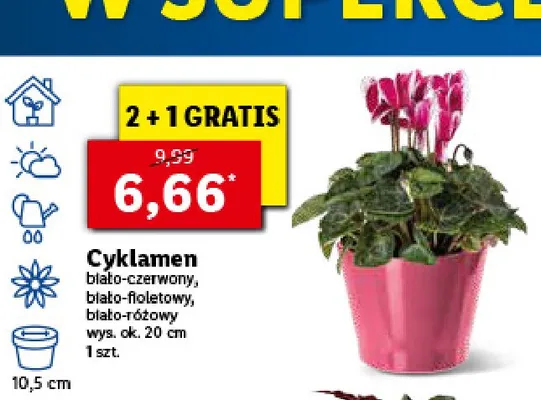 Cena produktu r贸偶ni si臋 w zale偶no艣ci od wybranego sklepu. Niestety nie posiadamy danych o aktualnych promocjach, jednak w艣r贸d archiwalnych ofert Cyklamen bia艂o-r贸偶owy kosztuje od 6,66 z艂.