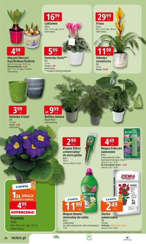 Cena produktu r贸偶ni si臋 w zale偶no艣ci od wybranego sklepu. Produkt Cyklamen don. 14 cm mo偶esz kupi膰 w promocji ju偶 od 16,99 z艂. Najta艅sza oferta, jak膮 mamy w naszej bazie jest z sieci Leclerc. Cyklamen don. 14 cm kosztuje aktualnie 16,99 z艂. Zobacz ofert臋