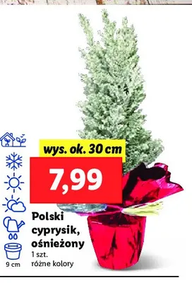 Cena produktu różni się w zależności od wybranego sklepu. Niestety nie posiadamy danych o aktualnych promocjach, jednak wśród archiwalnych ofert Cyprysik ośnieżony w don. 30 cm kosztuje od 6,99 zł do 7,99 zł.