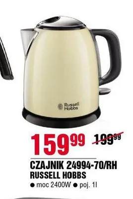 Cena produktu r贸偶ni si臋 w zale偶no艣ci od wybranego sklepu. Niestety nie posiadamy danych o aktualnych promocjach, jednak w艣r贸d archiwalnych ofert Czajnik 24994-70 Russell hobbs kosztuje od 159,99 z艂.