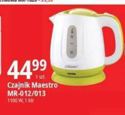 Cena produktu r贸偶ni si臋 w zale偶no艣ci od wybranego sklepu. Niestety nie posiadamy danych o aktualnych promocjach, jednak w艣r贸d archiwalnych ofert Czajnik mr-012 Maestro kosztuje od 44,99 z艂.