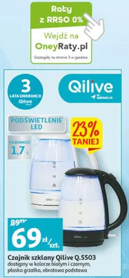 Cena produktu r贸偶ni si臋 w zale偶no艣ci od wybranego sklepu. Produkt Czajnik szklany q5503 czarny Qilive mo偶esz kupi膰 w promocji ju偶 od 49,99 z艂. Najta艅sza oferta, jak膮 mamy w naszej bazie jest z sieci Auchan. Czajnik szklany q5503 czarny Qilive kosztuje aktualnie 49,99 z艂. Zobacz ofert臋