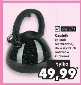 Cena produktu r贸偶ni si臋 w zale偶no艣ci od wybranego sklepu. Produkt Czajnik ze stali nierdzewnej 2.7 l mo偶esz kupi膰 w promocji ju偶 od 24,99 z艂 do 49,99 z艂. Najta艅sza oferta, jak膮 mamy w naszej bazie jest z sieci Biedronka. Czajnik ze stali nierdzewnej 2.7 l kosztuje aktualnie 24,99 z艂. Zobacz ofert臋