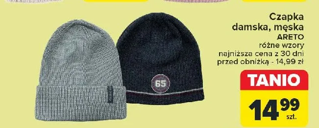 Cena produktu r贸偶ni si臋 w zale偶no艣ci od wybranego sklepu. Produkt Czapka damska Areto mo偶esz kupi膰 w promocji ju偶 od 16,99 z艂 do 29,9 z艂. Najta艅sza oferta, jak膮 mamy w naszej bazie jest z sieci Selgros. Czapka damska Areto kosztuje aktualnie 16,99 z艂. Zobacz ofert臋