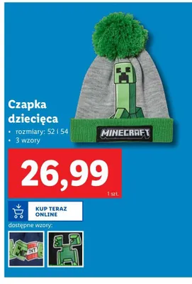 Cena produktu r贸偶ni si臋 w zale偶no艣ci od wybranego sklepu. Niestety nie posiadamy danych o aktualnych promocjach, jednak w艣r贸d archiwalnych ofert Czapka dzieci臋ca 52-54 kosztuje od 26,99 z艂.