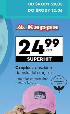 Cena produktu r贸偶ni si臋 w zale偶no艣ci od wybranego sklepu. Produkt Czapka z daszkiem damska Kappa mo偶esz kupi膰 w promocji ju偶 od 12 z艂. Najta艅sza oferta, jak膮 mamy w naszej bazie jest z sieci Woolworth. Czapka z daszkiem damska Kappa kosztuje aktualnie 12 z艂. Zobacz ofert臋