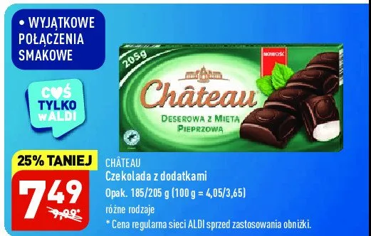 Przegl膮daj podobne oferty promocyjne do Czekolada deserowa z mi臋t膮 pieprzow膮 Chateau Chateau (aldi)!