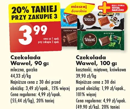 Zastanawiasz si臋, gdzie kupi膰 i ile kosztuje produkt Czekolada gorzka 70% Wawel? Regularnie sprawdzamy, czy jest promocja na ten produkt w Biedronka, Lidl, Kaufland, Auchan, Netto, Makro i innych sklepach. Aktualnie posiadamy 1 ofert臋 promocyjn膮 na ten produkt. Ceny zaczynaj膮 si臋 od 9,99z艂!
