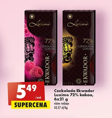 Zastanawiasz si臋, gdzie kupi膰 i ile kosztuje produkt Czekolada gorzka 72% Luximo premium ekwador? Regularnie sprawdzamy, czy jest promocja na ten produkt w Biedronka, Lidl, Kaufland, Auchan, Netto, Makro i innych sklepach. Aktualnie posiadamy 4 oferty promocyjne na ten produkt. Ceny zaczynaj膮 si臋 od 9,99z艂!