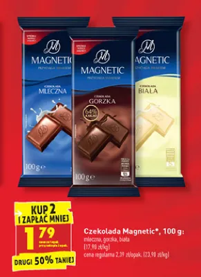 Cena produktu r贸偶ni si臋 w zale偶no艣ci od wybranego sklepu. Produkt Czekolada gorzka Magnetic dark mo偶esz kupi膰 w promocji ju偶 od 9,35 z艂. Najta艅sza oferta, jak膮 mamy w naszej bazie jest z sieci Intermarche. Czekolada gorzka Magnetic dark kosztuje aktualnie 9,35 z艂. Zobacz ofert臋