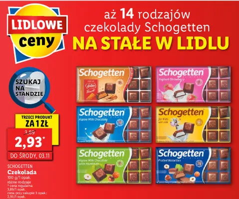 Cena produktu r贸偶ni si臋 w zale偶no艣ci od wybranego sklepu. Niestety nie posiadamy danych o aktualnych promocjach, jednak w艣r贸d archiwalnych ofert Czekolada lotus biscoff Schogetten kosztuje od 2,93 z艂 do 2,99 z艂.